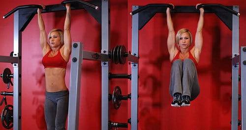 Для выполнения упражнения повисните на перекладине, взявшись за нее средним или широким хватом. Поднимите ноги (прямые или согнутые в коленях), чтобы образовался прямой угол между ними и корпусом. Вернитесь в исходное положение.