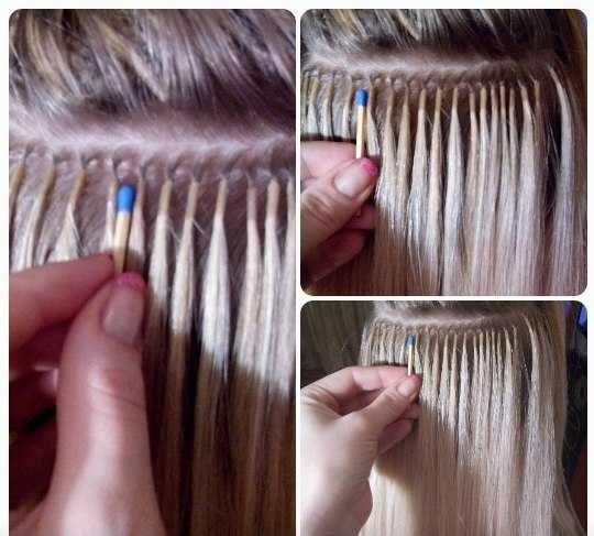 Капсула формируется с помощью щипцов или пальцев. В течение 20-30 секунд кератин застывает. Таким образом, наращивают все волосы в необходимом объеме.