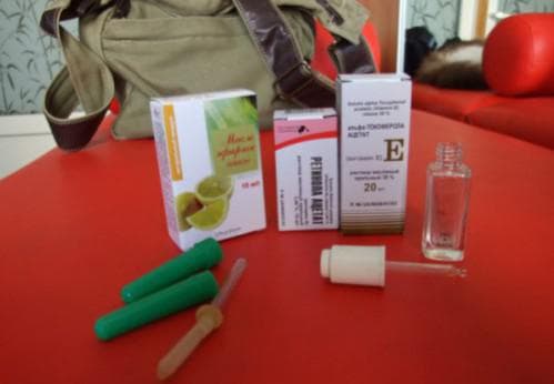 Для мощного питания и укрепления ногтей пластины необходимо использовать указанные витамины. Их втирают через день по очереди.