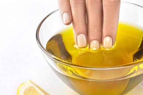 Полезным средством для ногтевой пластины считается оливковое масло. Его смешивают с несколькими каплями витамина А и лимонного сока. Смесь наносят на пальцы, накрывают целлофаном и надевают хлопчатобумажные перчатки. Эту маску для рук рекомендовано выполнять раз в неделю.