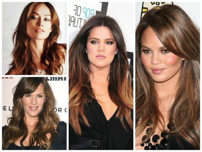 При выполнении окрашивания на темных волосах главной задачей становится частичное осветление кончиков, но не более, чем на 3-4 тона. Темным шатенкам и брюнеткам подойдут шоколадные, кофейные, ореховые и янтарные оттенки.