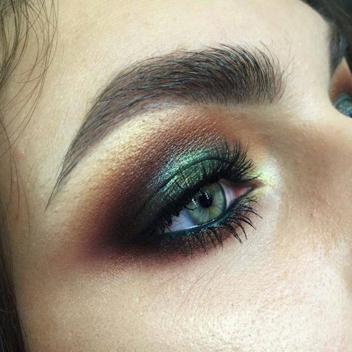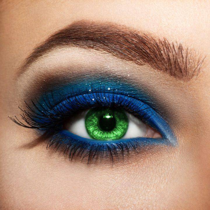 Классическим сочетанием именно для зелёных глаз считается палитра, состоящая из изумрудных красок, глубокого синего цвета.