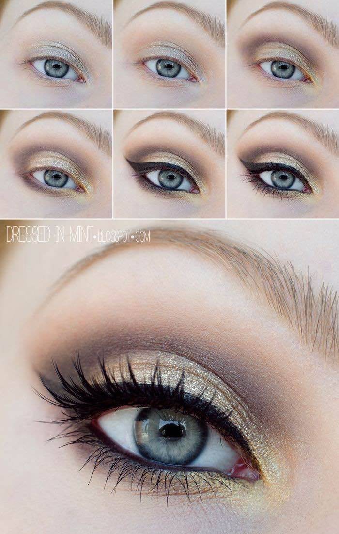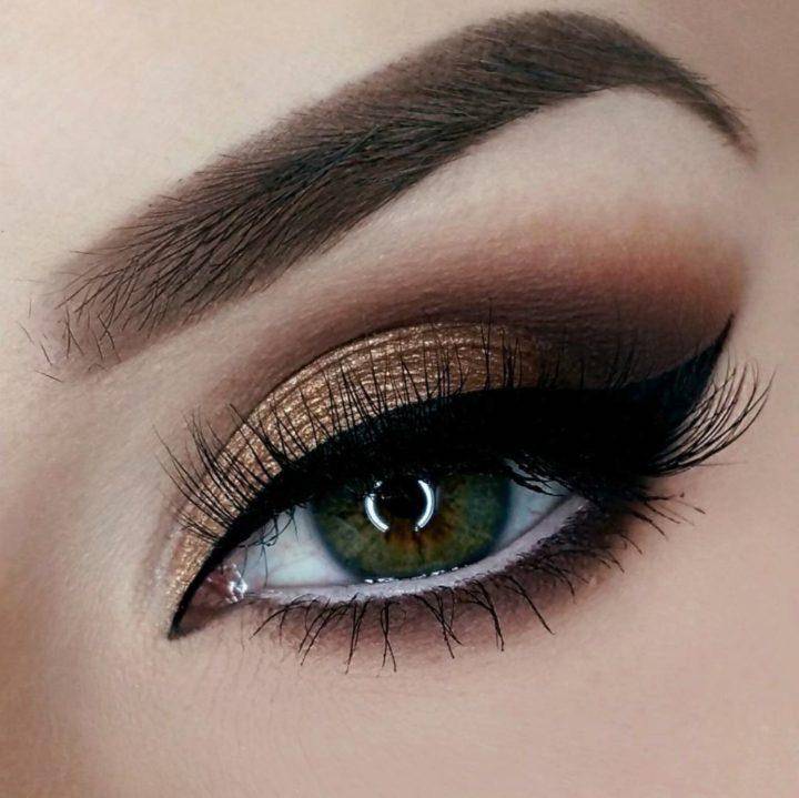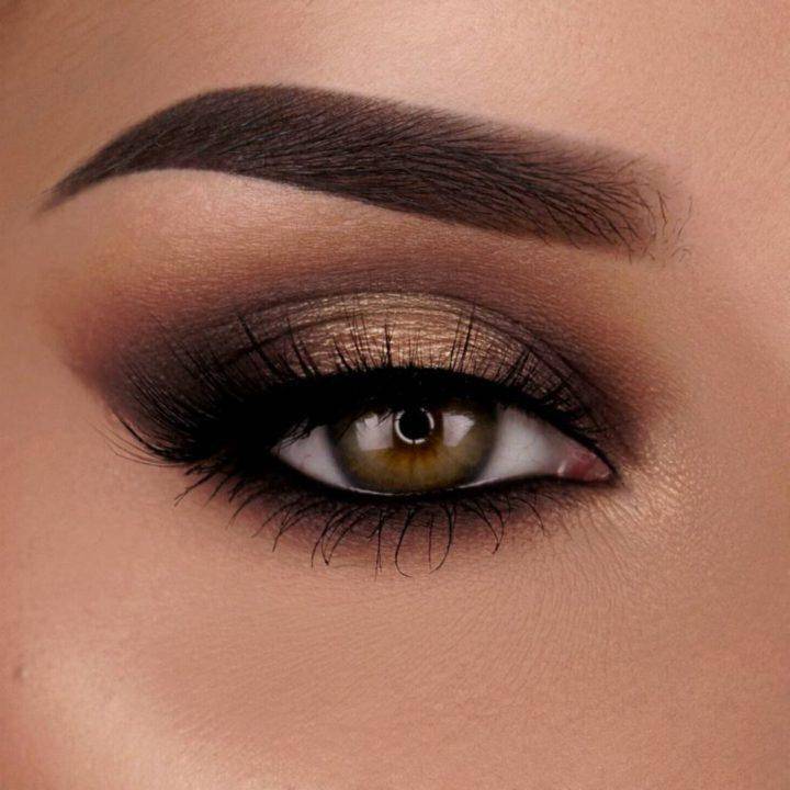 - Дневной макияж может быть основан на бежевых, коричневых, бронзовых оттенках, которые визуально «выделяют» цвет радужки;