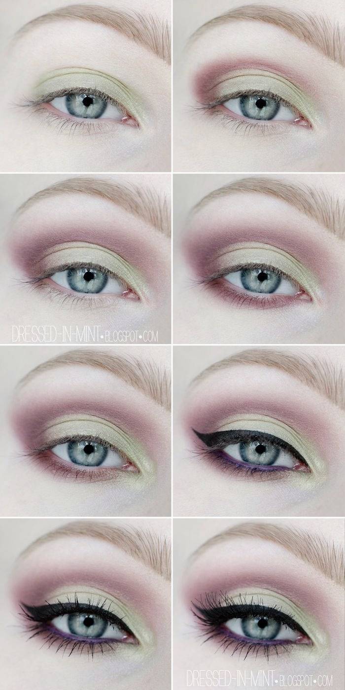 - Очень выгодно подчёркивают цвет глаз оттенки фуксии, лиловые и сливовые вариации, однако такой макияж лучше выполнять для вечерних выходов в свет;