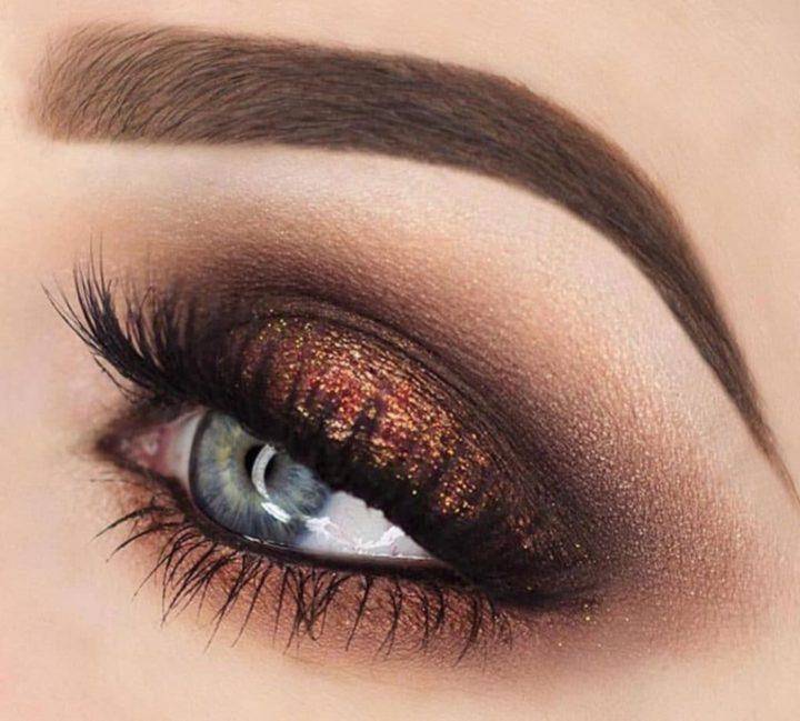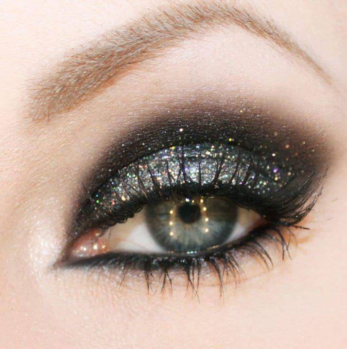 Все привыкли, что чаще всего макияж смоки айс выполняется с матовыми тенями. А вы только представьте как роскошно и соблазнительно будет он выглядит в блестящих тенях. Блестящий смоки айс будет мерцать семи оттенками.