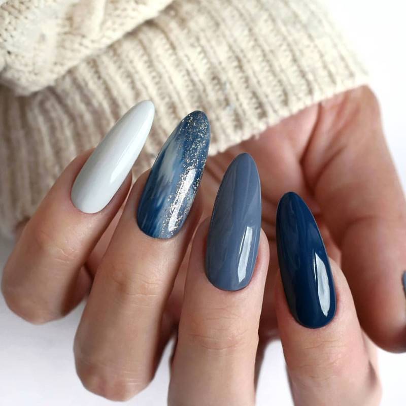 ФОТО ЛУННОГО МАНИКЮРА В СИНИХ ТОНАХ