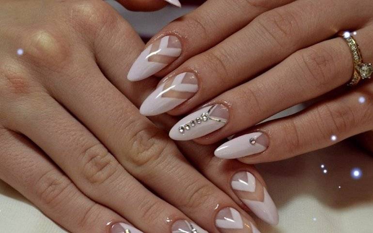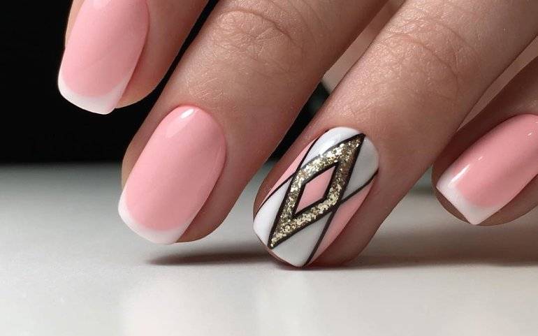 Для любителей модных тенденций подборка фото с геометрическими рисунками. На коротких ногтях можно использовать дизайн с тонкими линиями, а вот на длинных полет фантазии не ограничен.