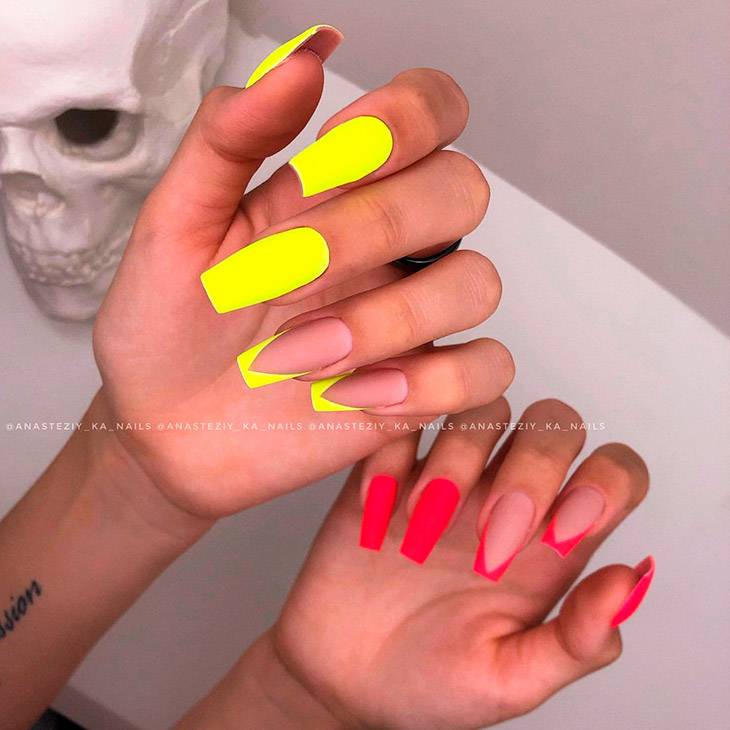 Гармоничное сочетание ярких лаков в маникюре