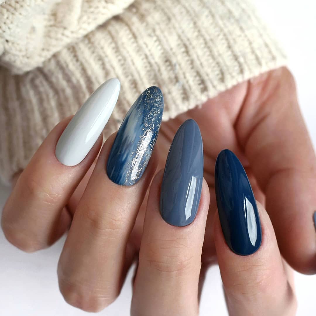 Синий цвет уже на протяжении нескольких лет занимает лидирующие позиции в индустрии моды. Мастера ногтевого сервиса с большим удовольствием используют его, выполняя маникюр разной сложности. Синий цвет идеально подойдет для летнего, а также зимнего сезона. Синий цвет в маникюре лучше всего перекликается с: