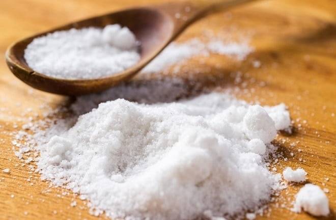 - Поваренная соль – действует фунгицидно, уменьшает отеки и воспаление, блокирует действие патогенных микроорганизмов. Подходит для лечения лёгких форм грибковых инфекций.