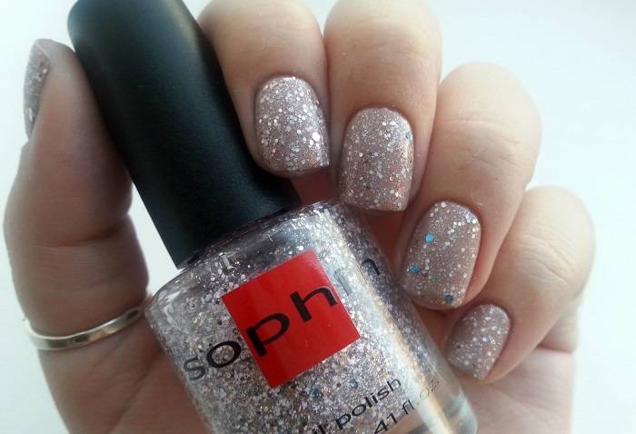 В коллекцию входит топовое покрытие с мелкими частицами, которым можно разбавить цвет любого лака. Как выглядит лак для ногтей Sophin, фото полностью не передает. Оттенок, как правило, на тон или два ярче.
