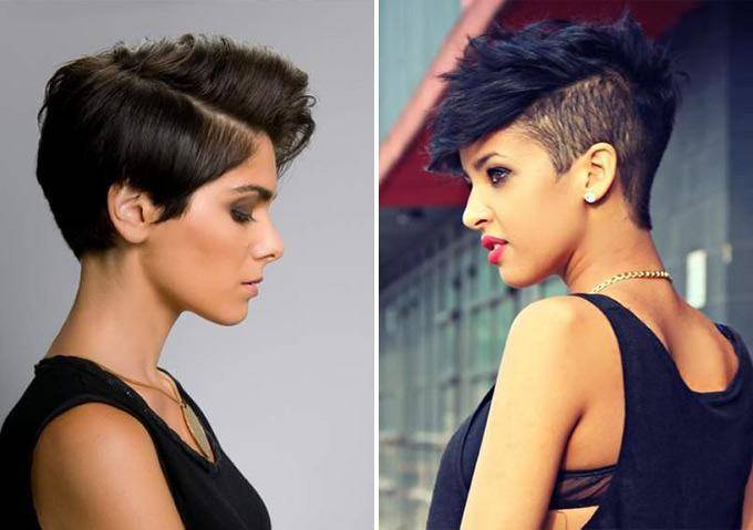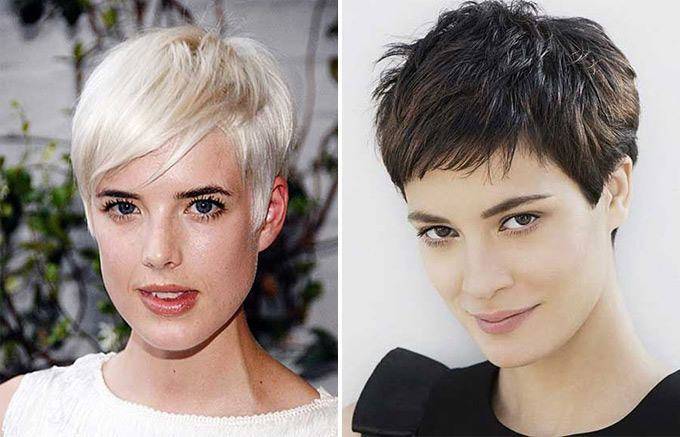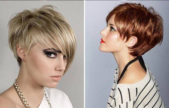 Модные стрижки на короткие волосы не могут обойтись без пикси. Ее главной особенностью является укороченная затылочная и височная область. Прическу делают объемной пряди разной длины, а также негустая челка, выстриженная полукругом.
