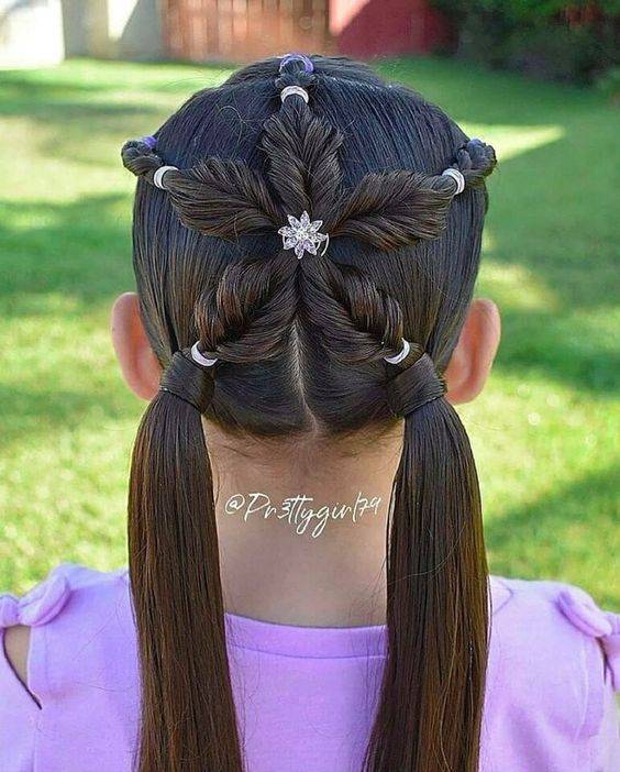 По-детски наивная прическа выглядит, как два параллельных пучка закреплённых рядом с макушкой. На голове делаются два высоких конских хвоста, которые скручиваются в пучок и фиксируются резинками, шпильками или невидимками.