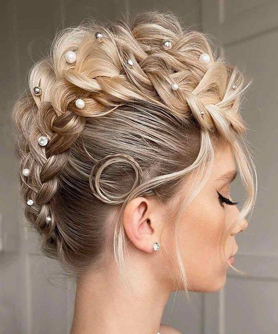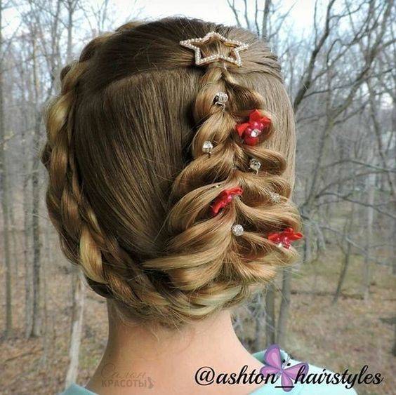 Прической для торжественного случая может стать фантазийная коса, красиво уложенные жгуты, высоко или низко уложенный пучок, мягкие волны среднего размера, красиво уложенные кудри или прически в греческом стиле.