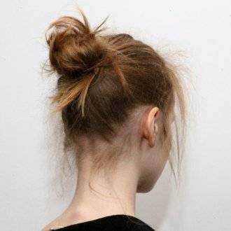 Локоны собирают в верхней части головы и скручивают в пучок. Приветствуется лёгкая растрёпанность с эффектом «недавнего подъёма с постели» с нарочитой небрежностью, взъерошенностью.