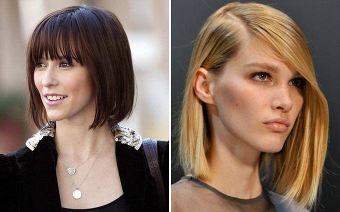 - с удлинением у лица — то некий компромисс между длинными волосами и аккуратной прической. Если смотреть на нее в профиль, получится острый угол. Каре с удлинением также часто дополняют прямой либо косой челкой;