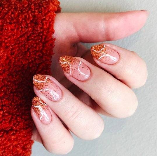 Для новогоднего маникюра 2021 блестящие детали будут как никогда уместны, поэтому можете смело добавлять к дизайну ногтей блестки, глиттер, камифубуки и конечно же камушки.