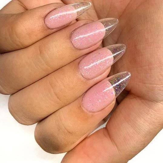 А вообще вариантов французского маникюра, конечно, гораздо больше. Чаще всего обыгрывают форму кончиков ногтей. Проще всего это сделать с заостренными кончиками.
