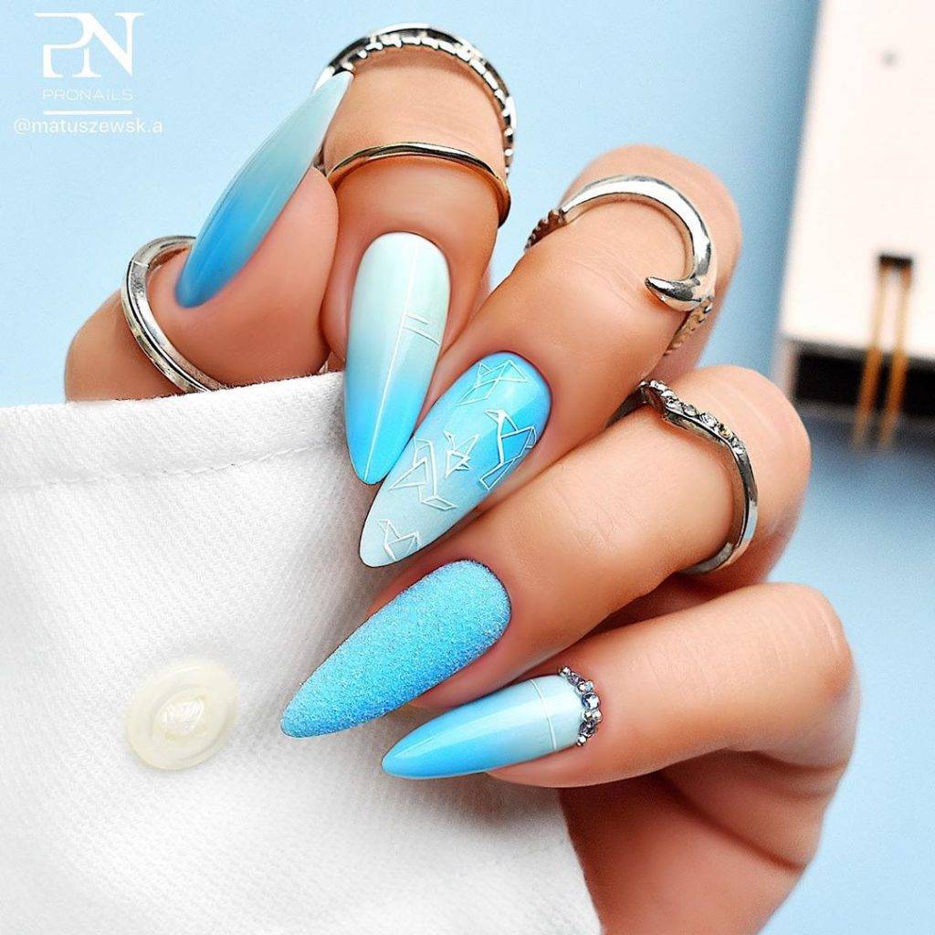 Но сейчас речь идет о другом тренде. У зарубежных мастеров и блогеров такой летний маникюр получил название Geode Nails. Оно пошло от названия осадочной породы, которое на русском звучит как жеода. Особенность такой породы в том, что ее сердцевина плотно наполнена яркими кристаллами, которые словно растут на стенках.