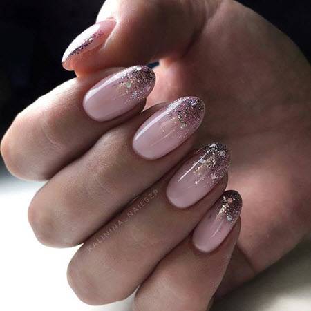 - После того как лак высохнет, необходимо нанести закрепляющее покрытие, которое сгладит поверхность. Сверху посыпьте блестящим глиттером, позволяющим скрыть мелкие недостатки на ногте и украсить рисунок.