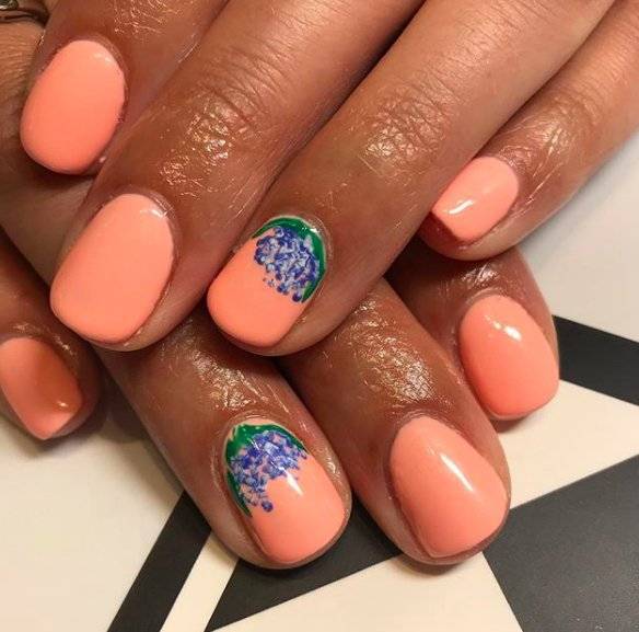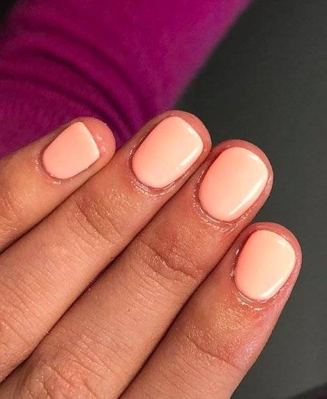 Оригинальный и красивый дизайн ногтей — нежно-персиковый. Очень бледной коже такой шеллак противопоказан, а вот все остальные могут примерять самые разные нейл-образы, созданные на основе такого лака. Прилагаем несколько идей маникюрного дизайна на фотографиях ниже.
