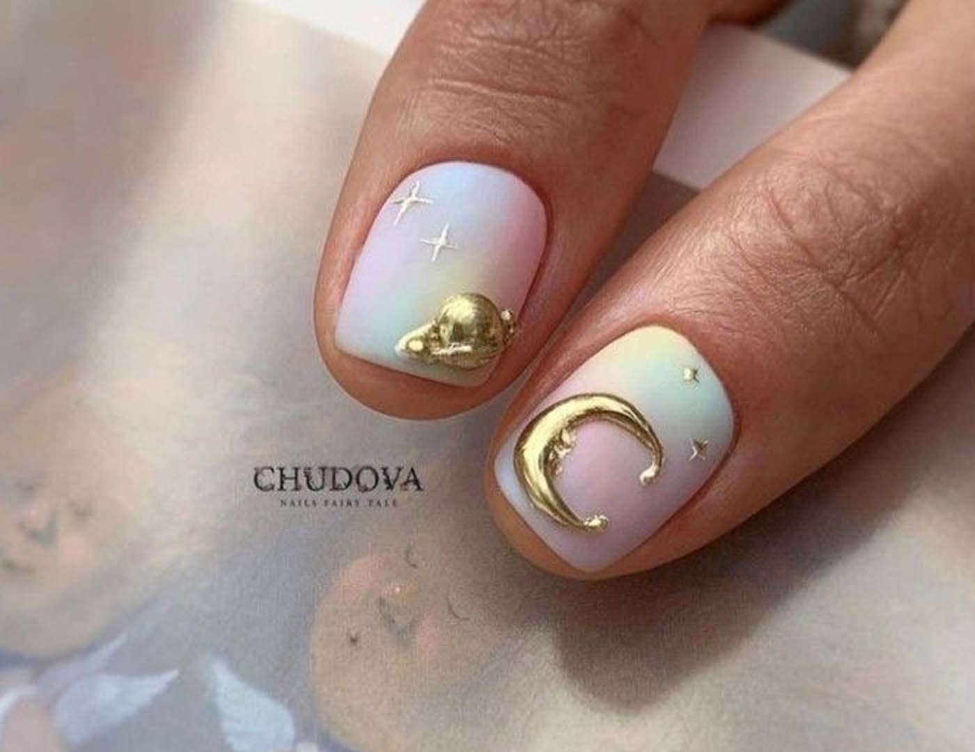 Использование страз – не новшество в маникюрноммоделировании. Но в сезоне 2019 – 2020 мастера предлагают оригинальный способвыкладывания камушков в виде изобразительных объектов: сердечек, вопросительныхи восклицательных знаков, звездочек, крестиков-ноликов.