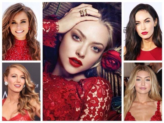 К красному платью визажисты рекомендуют подбирать макияж с элементами красного и методом единого акцентирования. То есть это может быть красная помада на губах, а глаза подкрашены легкими стрелками и тушью. Либо смелый красный смоки-айс с черными графическими стрелками, но со спокойной бежевой помадой.