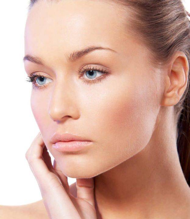 Тон кожи бледный с легким очертанием линии скул.