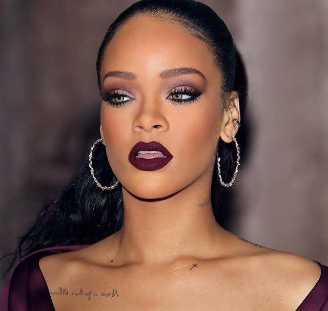 Губы налитые темной губной помадой и имеют четкий контур. Для губ могут использовать тени с кремовой текстурой, если хотят сделать их с отливом и блеском какой-либо палитры цвета.