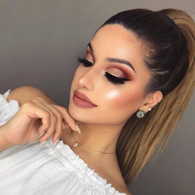 - После того, как макияж нанесен, он должен выглядеть естественно: дневной свет должен рассеиваться по всему лицу и не сосредотачиваться на одной черте.