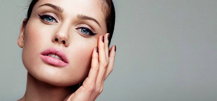 Тон кожи бледный с легким очертанием линии скул.