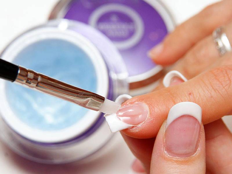 Типса приклеивается специальным клеем и дополнительно фиксируется гелем. Идеально подходит для мягких ногтей, где кончик ногтя не зарастает и не теряет форму. Также можно использовать акрил. Это особый порошковый материал, смешанный со специальным раствором. Этот модельный состав очень быстро застывает, поэтому использовать его нужно очень быстро. Такое под силу только специалисту.