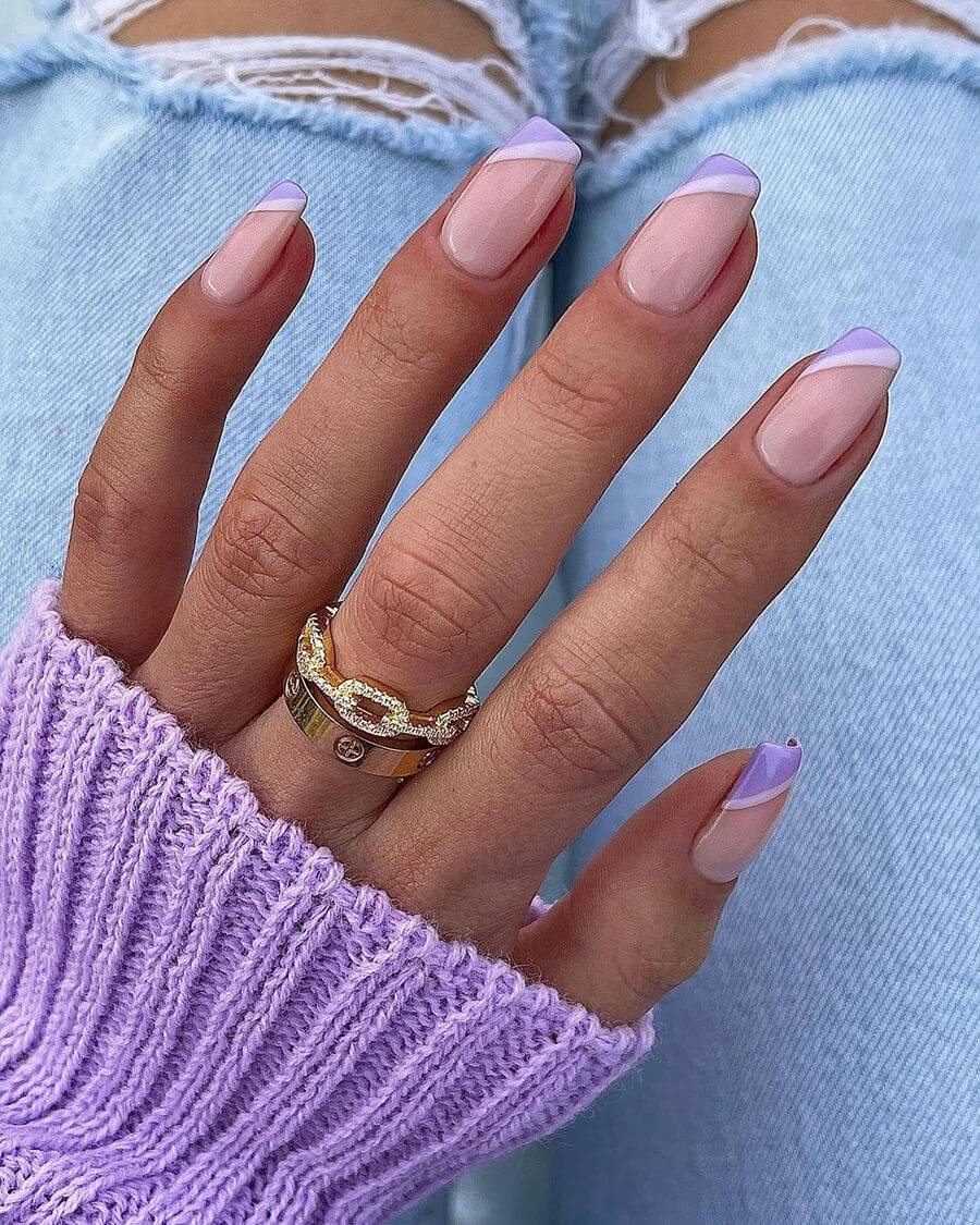 Еще один натуральный вариант покрытия, который делает едва заметный акцент на ваших руках. Оттенок лака чуть-чуть светлее вашего оттенка кожи, но при этом сильного контраста нет. микс различных оттенков. Вовсе не обязательно использовать только один оттенок при покрытии. Вы можете подобрать несколько оттенков и наносить их поочередно или хаотически. При таком нанесении можно использовать до 5 различных оттенков. Отлично сочетаются оттенки розового и коричневого. нюд камуфляж. Еще один способ сделать очень мягкий акцент на своих руках. Используем оттенки розового, хаки и коричневого. мокка и золото. Необычный вариант покрытия, который смотрится празднично и нарядно, но при этом не утрачивает своей сдержанности и элегантности. Основа такого маникюра — это, конечно, мокка. Золото добавляем совсем немного золота на кончиках ногтей. При таком сочетании вам может и не понадобятся дополнительные украшения на руки или пальцы. Одного кольца вполне достаточно, чтобы получить прекрасный и завершенный образ. нюд и лаванда. Еще один интересный вариант для покрытия, если хочется чего-нибудь оригинального. Сам по себе лавандовый оттенок довольно яркий, даже если взять самые приглушенные оттенки. А вот добавить немного лаванды к бежевому нюду — это идеально. Можно сделать любой небольшой лавандовый акцент на ногтях. нюд и минимализм. Тренд этого сезона — простота и лаконичность. Если уж добавляете узоры и геометрические фигуры, то не переусердствуйте. Всего должно быть в меру.