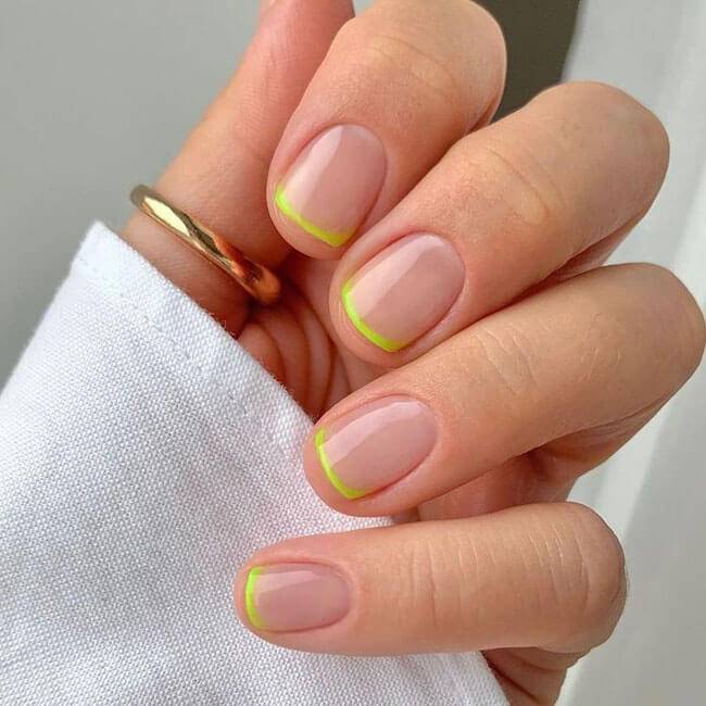 Френч. Это классика, которая никогда не выйдет из моды, но в ближайшее время в тренде будет цветной френч. Основная часть ногтя остается прозрачной или окрашивается в нюдовый оттенок, а край ногтевой пластины выделяется ярким цветом.