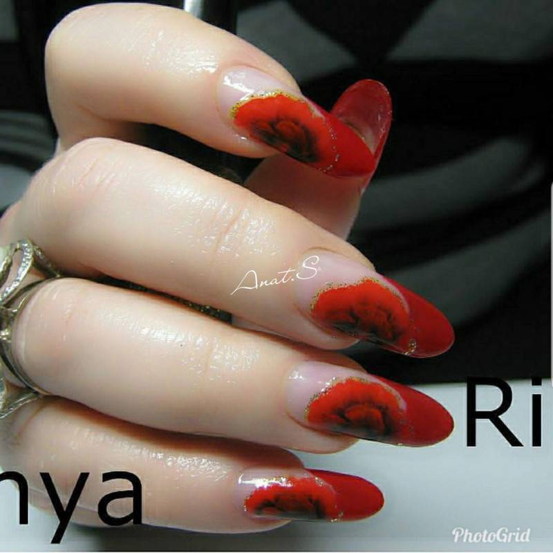 - Под красным глянцем и матовым покрытием стильно смотрится дизайн с фольгой.