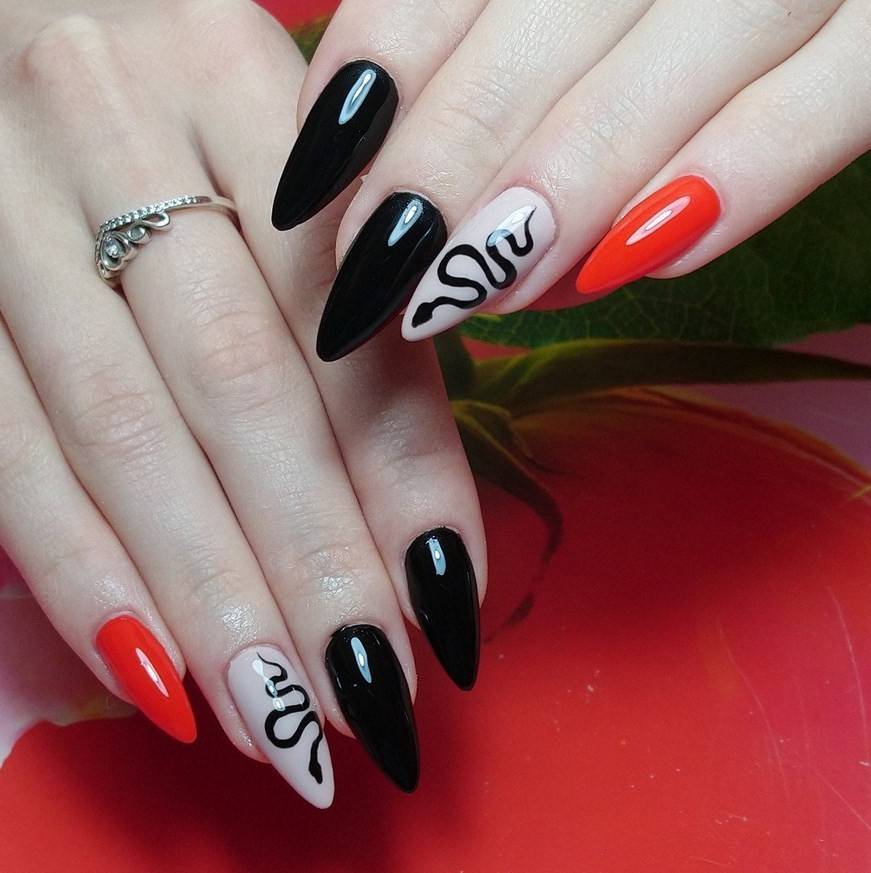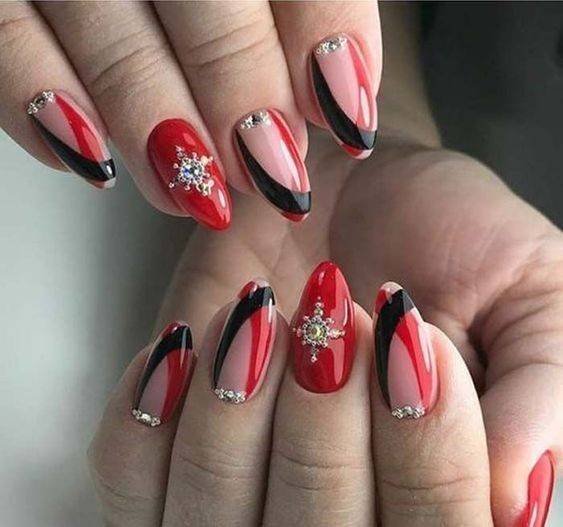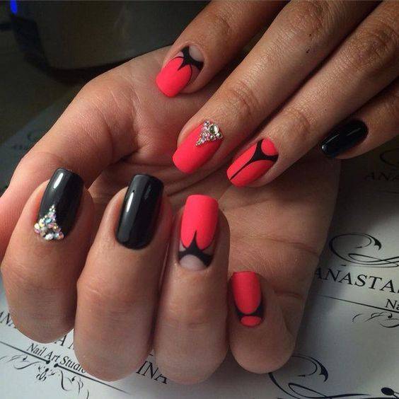 Неудивительно, что у сочетания этих цветов так много поклонниц. Разнообразие декора и техник позволят воплотить самые яркие фантазии и по-настоящему влюбиться в свои ноготки! Черный с красным цвета создадут превосходный дуэт в любом дизайне маникюра.