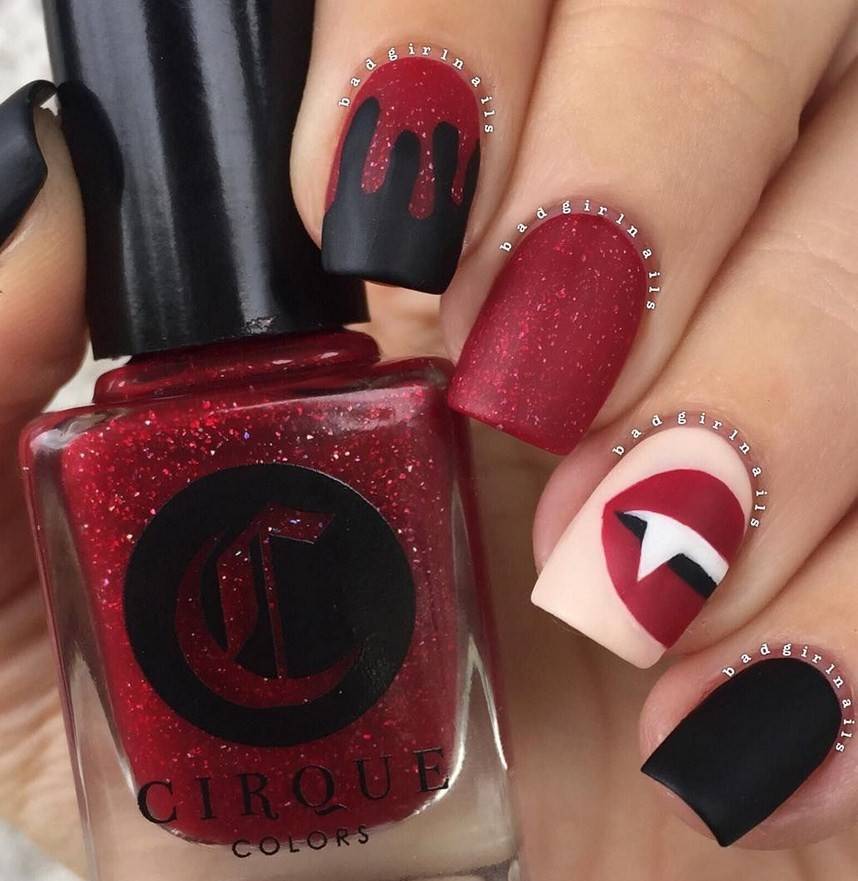 Как серьезная студентка, так и леди-босс с радостью разнообразят свой привычный образ красно-черным маникюром своих ногтей. При участии столь ярких и контрастных отливов без особого труда можно быть готовой к вечеринке особой тематики, например, явиться на девичник в качестве женщины-вамп, а быть может просто запомниться среди прочих оригинальным вариантом маникюра.