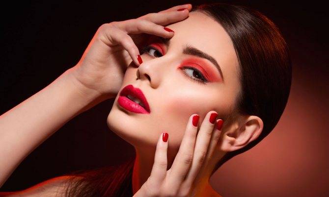 Выбор оттенков красного зависит от характеристик ногтей. Алый или ярко-красный лак подойдет только для коротких пластин.