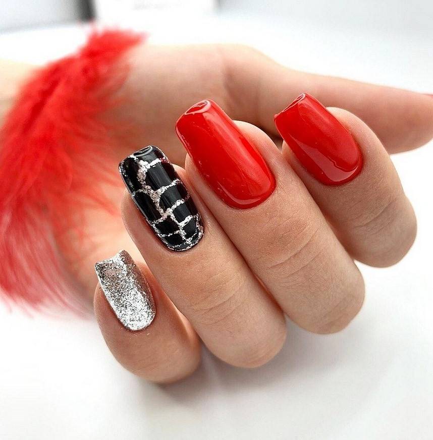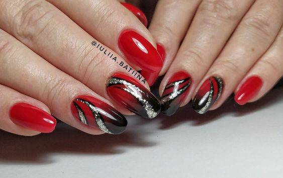 Серебряный цвет — еще один отличный выбор для сочетания с черно-красным маникюром. Серебряные элементы, такие как блестки, полоски или линии, будут прекрасно контрастировать с черным и красным цветами, и добавят вашему маникюру более сдержанный и элегантный вид.