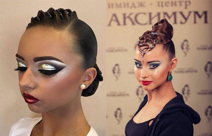 Если Вы любительски занимаетесь танцами, выбор прически для спортивных танцев на Ваш вкус. Тут уместны и хвосты, и разнотипные пучки, и косы… Например , или . Главное, чтобы полет фантазии граничил с Вашей зоной комфорта. Однако если дело касается профессиональных танцев (бальных, например) – нужно учитывать некоторые моменты.