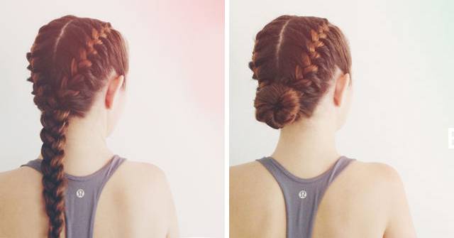 Простая и быстрая прическа соберет волосы от лица и шеи, создав комфортные условия для тренировки. Для того чтобы сделать пучок потребуется приготовить резинку и несколько шпилек. Потребуется собрать волосы в высокий хвост и завернуть его вокруг своей оси. В конце необходимо зафиксировать свободный конец шпилькой или невидимкой. Добавить изюминку можно, если получившийся хвост предварительно заплести в косу.