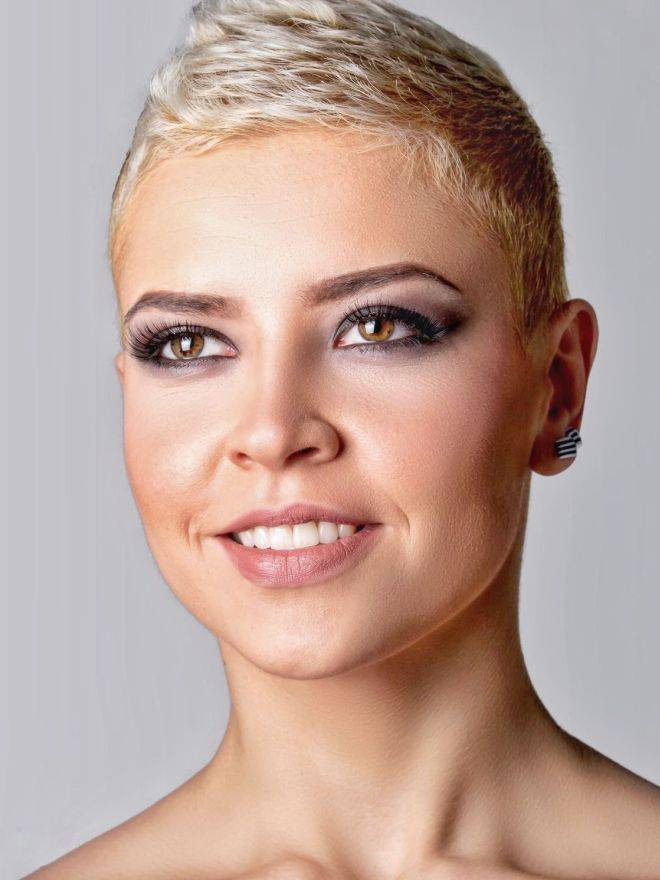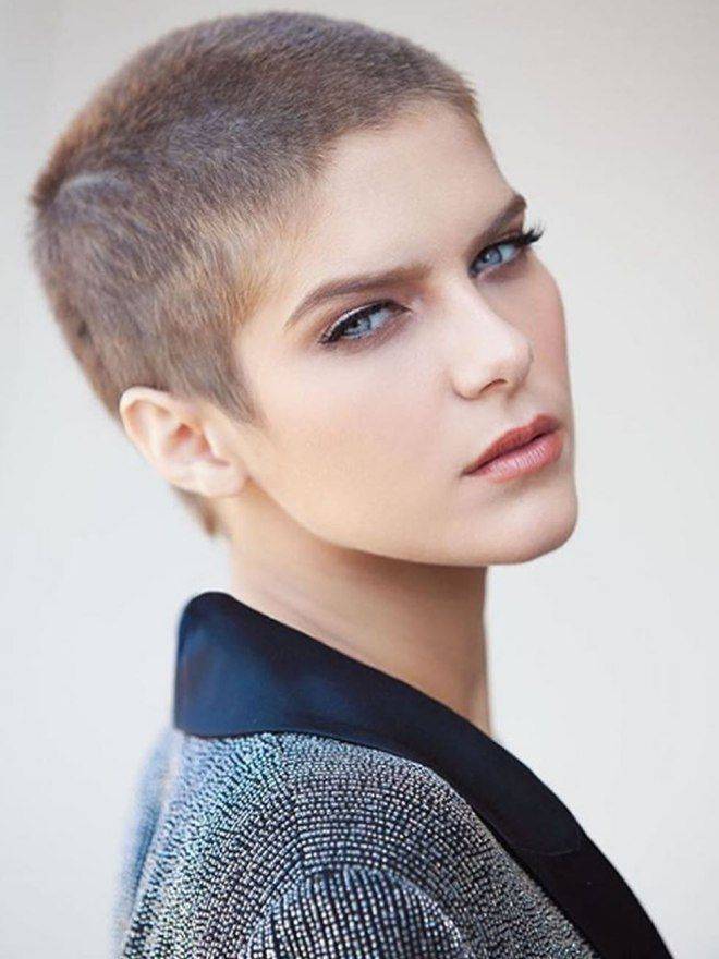 Наголо женщины стригутся редко, и только имея идеальную форму черепа, правильные черты лица. Обычной машинкой эффекта абсолютно гладкого черепа не добиться, нужен будет шейвер. Но и стрижка под 1-2 мм будет выглядеть не менее эффектно. Не забудьте только выровнять и четко очертить линию роста волос.