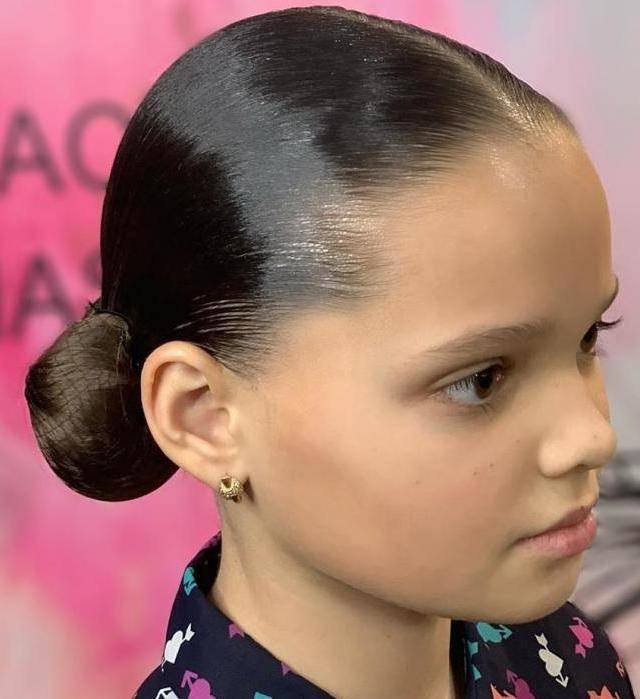 Ракушка. Еще один классической вариант прически для бальных танцев. Укладка отлично украсит юную обладательницу как средних, так и длинных волос. Имея определенную сноровку, можно соорудить «ракушку» даже из довольно коротких волос. Прическа прекрасно подходит практически всем, вне зависимости от индивидуальных особенностей или формы лица девочки. Кроме того, она отличается большой легкостью в выполнении. Известно огромное количество вариантов этой прически. Используется примущественно для исполнения европейских танцев.