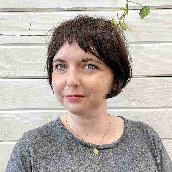 Цель — создать иллюзию более длинного лица, но делать это нужно осторожно. Вам подойдет длина до плеч или чуть длиннее со средними слоями