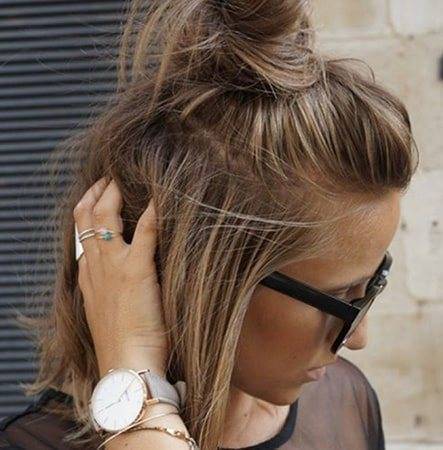 Волосы с передней части собираются в пучок. Такой подход открывает обзор и не позволяет коротким волосам попадать на лицо.
