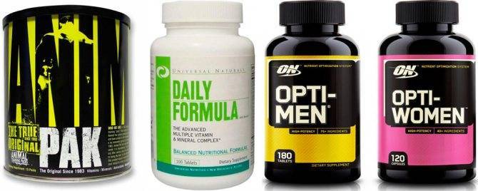 - «Animal Pak» (Universal Nutrition, США). Богатейший мультикомпонентный состав, направленный на повышение выносливости спортсмена, снижение болевого синдрома в мышцах, наращивание рельефной мускулатуры.