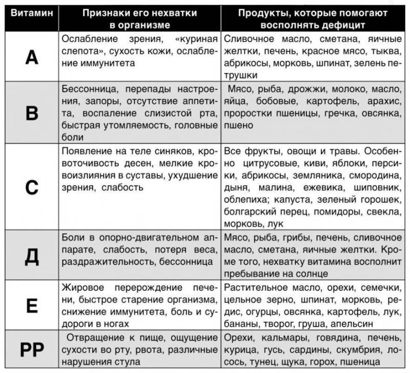 - Ретинол (витамин А) — молочная продукция, рыбий жир, абрикосы, тыква, морковь.