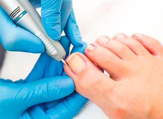 - Гигиеническая обработка. Выполненный по всем правилам аппаратный педикюр особенно актуален для борьбы с вросшим ногтем на начальных стадиях. Если деформация ногтя только начинается, врач-подолог обрабатывает ногтевую пластину специальным раствором и подкладывает под ее края тампоны (каполин), снижающие давление на окружающие ткани. После того, как нормальное направление роста восстанавливается, ногтю придается физиологически правильная форма.