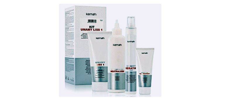 линейка Kemon родом из Италии, наверное, поэтому, производители делают акцент не просто на реставрации волос, а на распрямление кудрявых локонов. В наборе всего 4 средства: разглаживающий крем, нейтрализатор, восстановитель с кератином и кондиционер-закрепитель с целлюлозой из экстракта авокадо и молодого бамбука, что предотвращает вымывание краски из прядей. Самое большое достоинство такого набора – натуральность: в нем нет аллергенного лаурил сульфата, искусственных красителей;