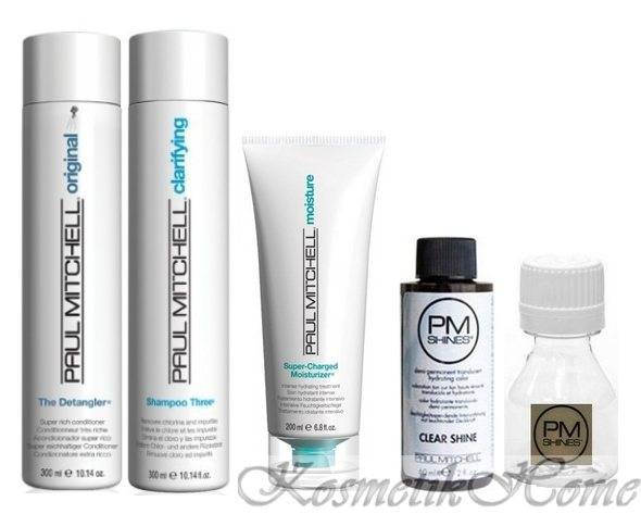 Комплекс от Paul Mitchell выпускают тоже в двух вариантах — цветной и бесцветный. Подходит для всех типов волос.